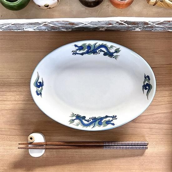 【中華食器/プラター(楕円皿)/プラター 20cm〜30cm】【カラー:ブルー系】【形状:楕円】【サイズ:中中】