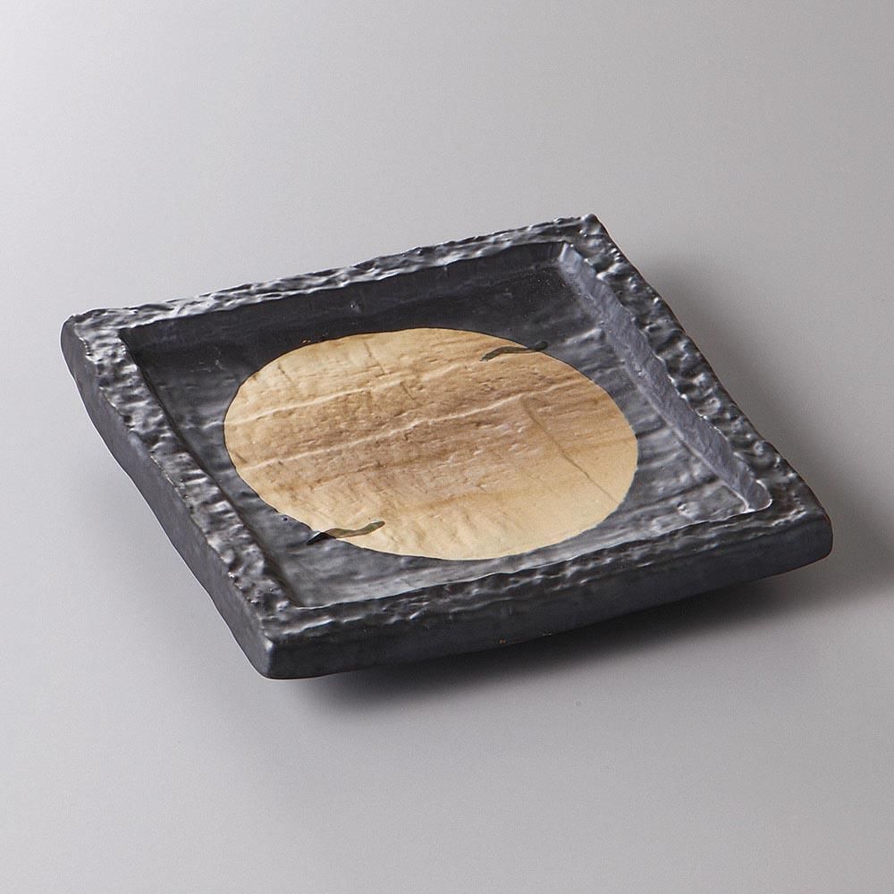 103-7-34J みやび街道vol.5 黒釉砂目正角5.5皿 業務用