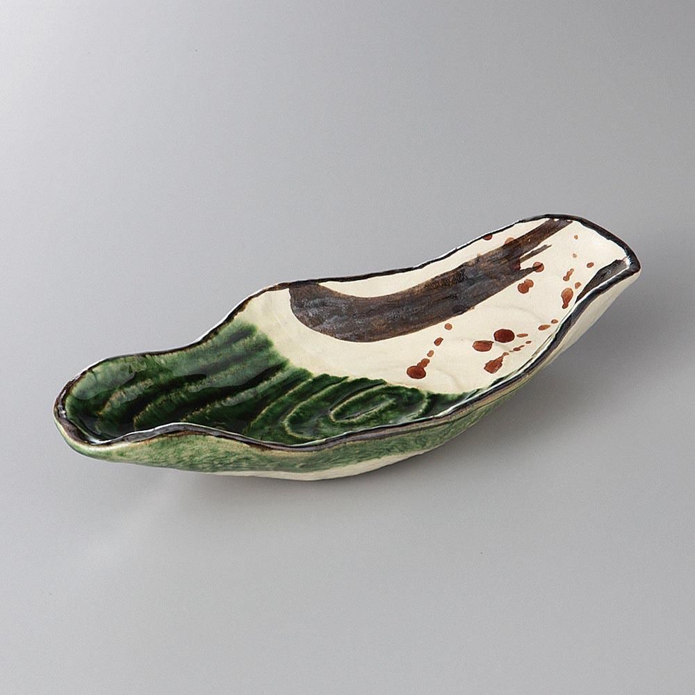 104-3-22J みやび街道vol.5 織部サビ絵舟型向付 業務用