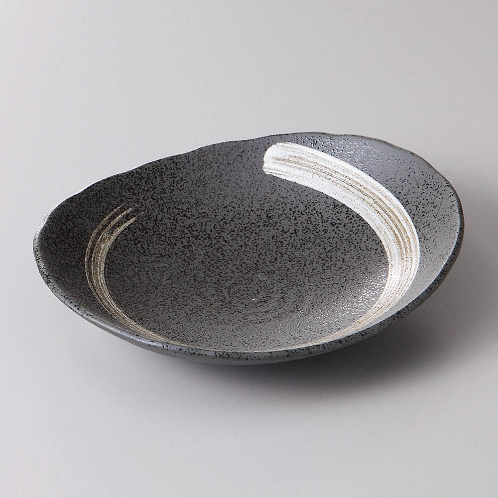 112-4-2J みやび街道vol.5 白刷毛天目楕円皿 大 業務用