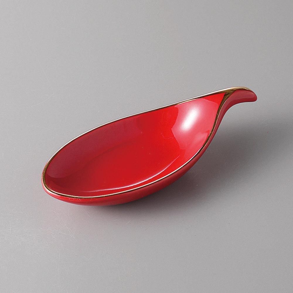 180-20-41J みやび街道vol.5 赤釉渕金木の葉型珍味 業務用