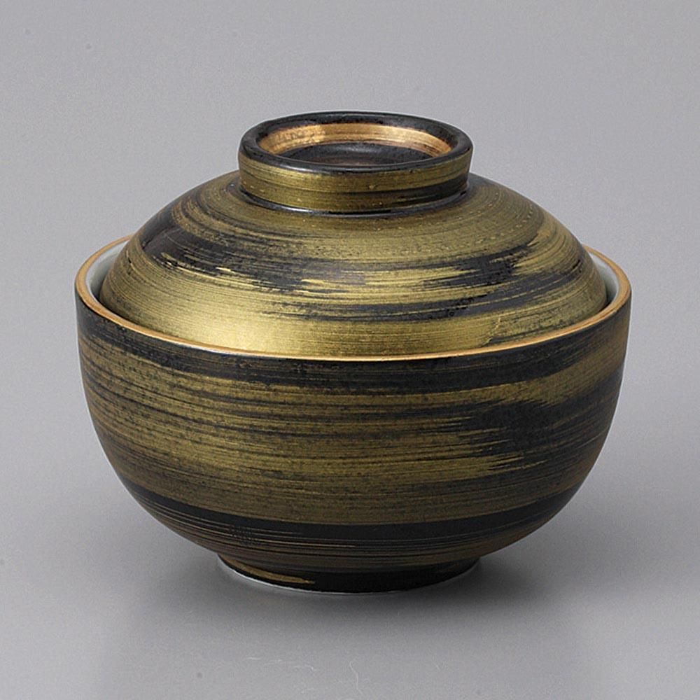 206-9-8J みやび街道vol.5 黒結晶金彩刷毛 煮物碗(大) 業務用