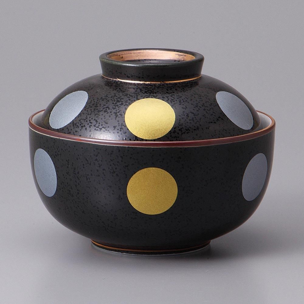 207-17-58J みやび街道vol.5 黒結晶金銀彩丸紋煮物碗 業務用