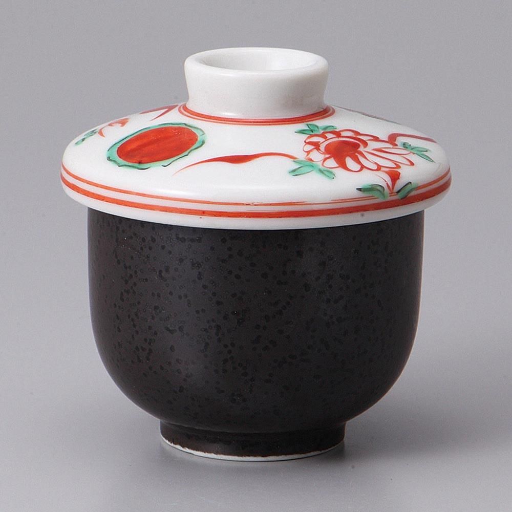 212-26-58J みやび街道vol.5 黒結晶赤絵花鳥小むし碗 業務用