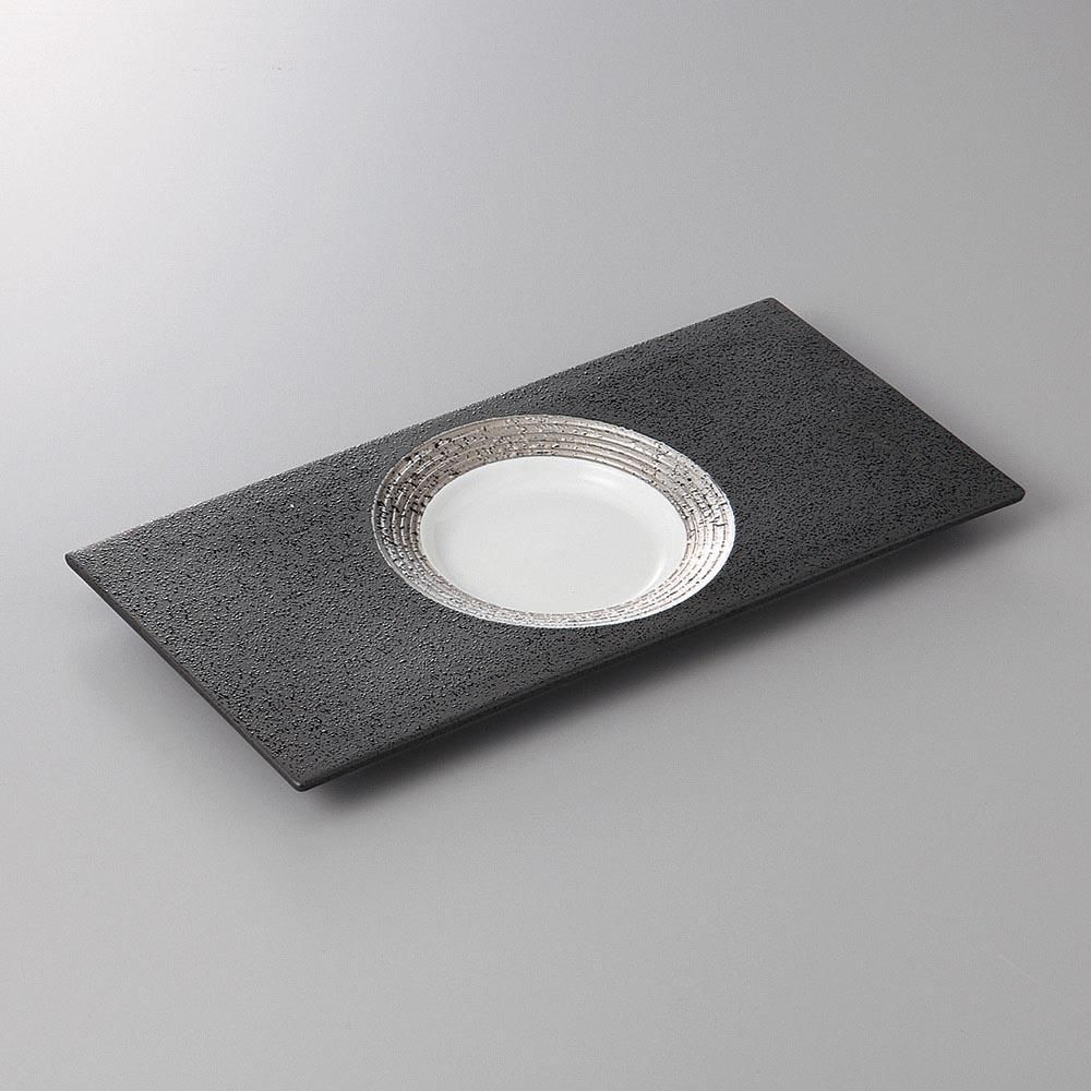 226-3-35J みやび街道vol.5 黒釉ホールプラチナ長角皿 業務用