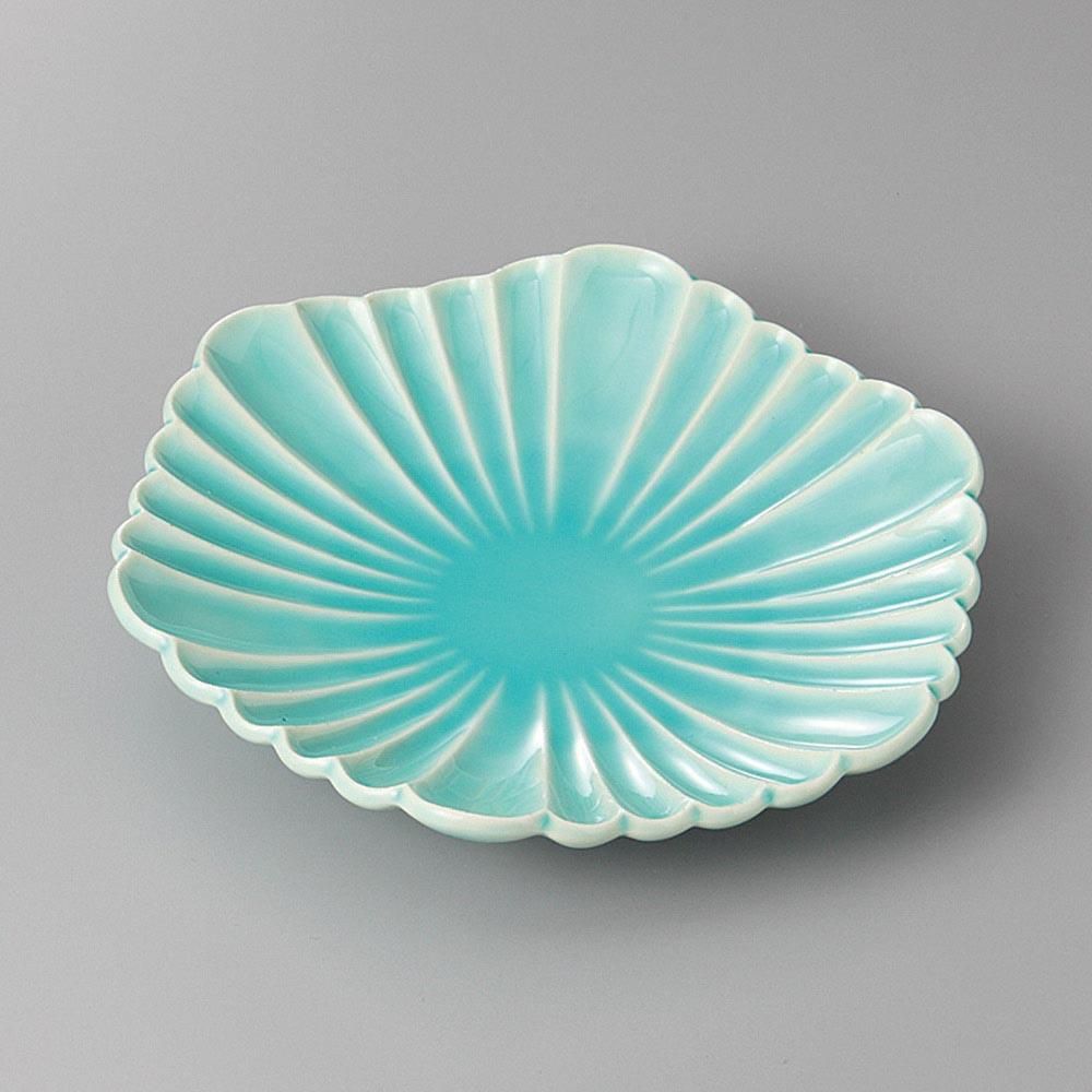 230-1-23J みやび街道vol.5 マリンブルー菊彫六角皿 業務用