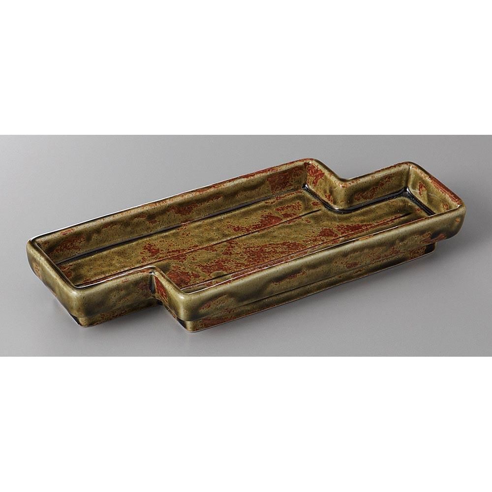 235-14-10J みやび街道vol.5 織部ライン流し変形突出皿 業務用