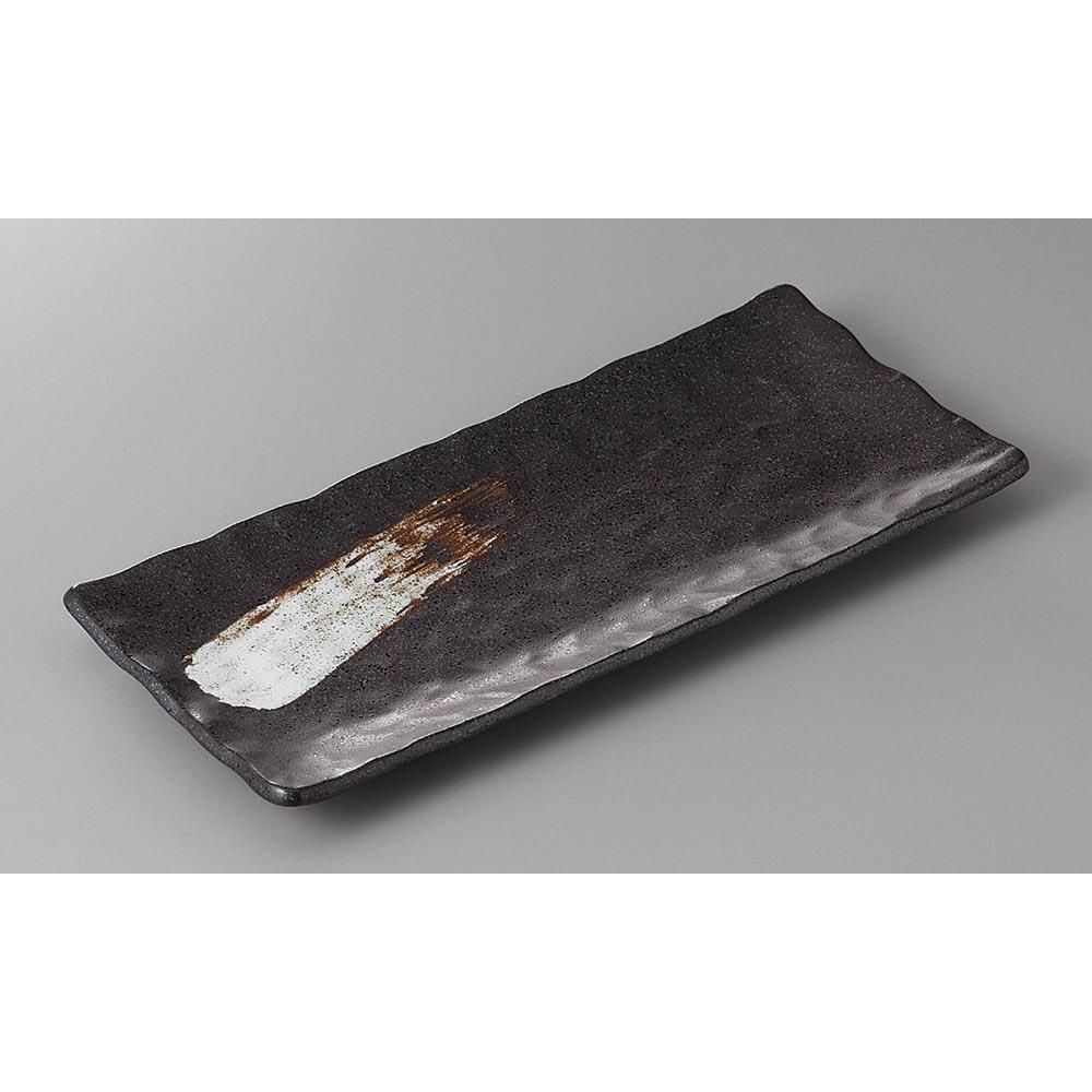 247-11-48J みやび街道vol.5 亀甲黒刷毛目長角皿 業務用