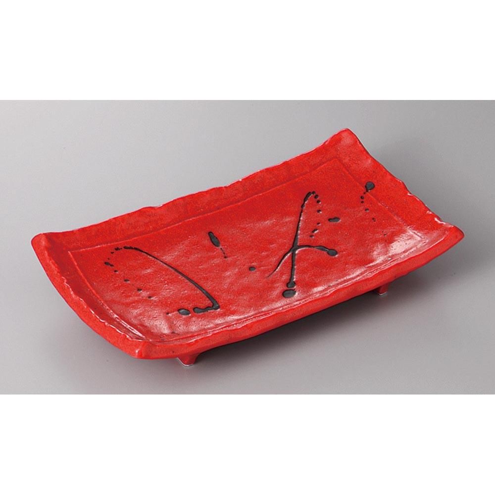 263-7-27J みやび街道vol.5 赤釉黒飛ばし焼物皿 業務用