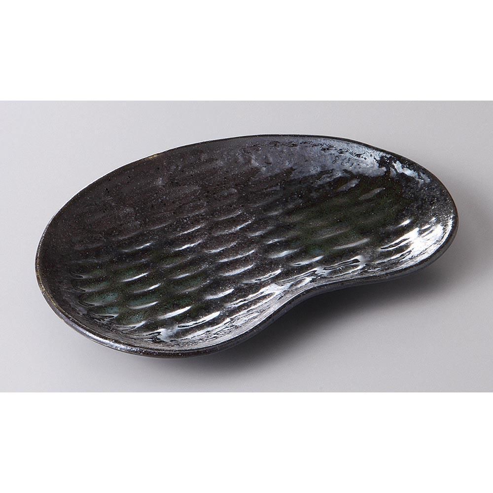 273-13-58J みやび街道vol.5 黒備前ヒスイ吹豆型焼物皿 業務用