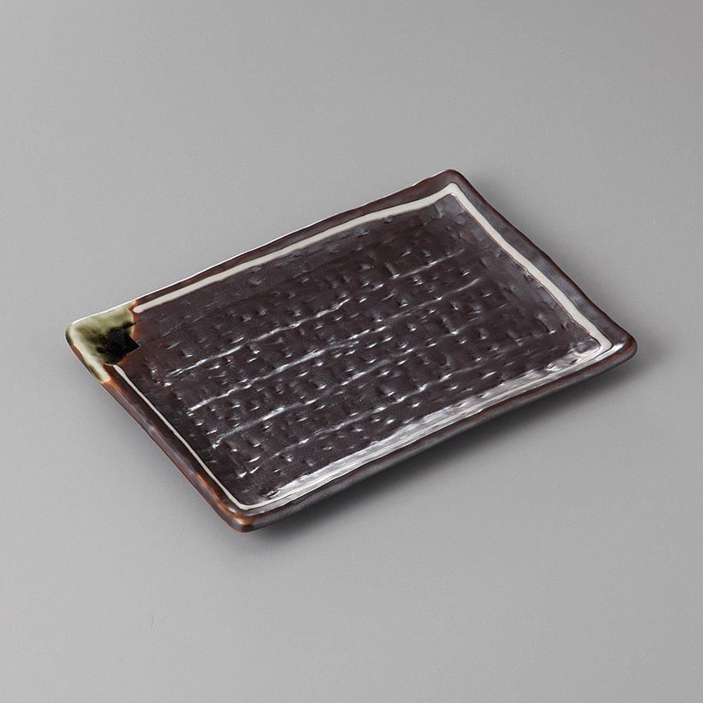 276-6-77J みやび街道vol.5 鉄釉ライン6.0長角皿 業務用