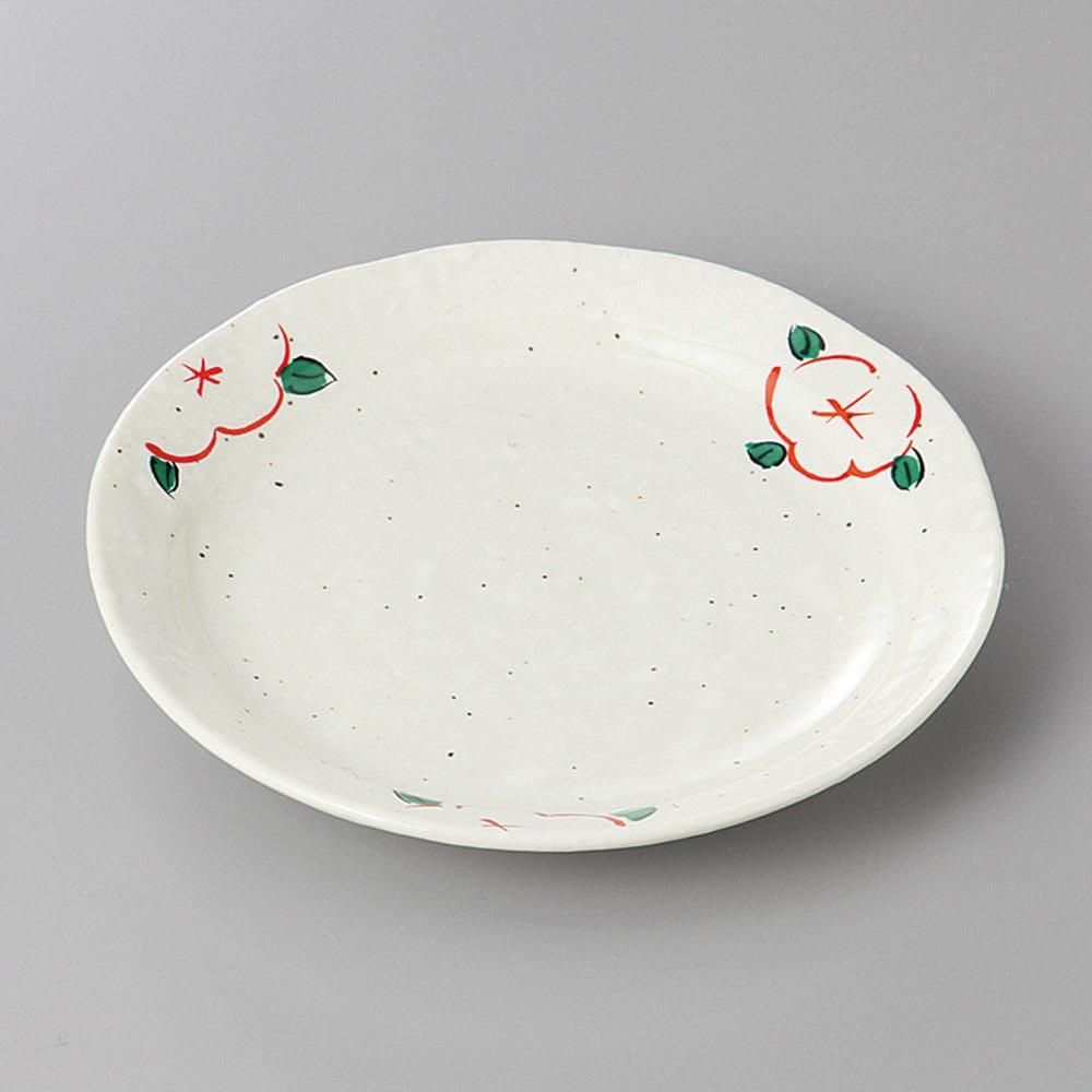 299-50-79J みやび街道vol.5 雪粉引赤絵花5.0丸皿 業務用