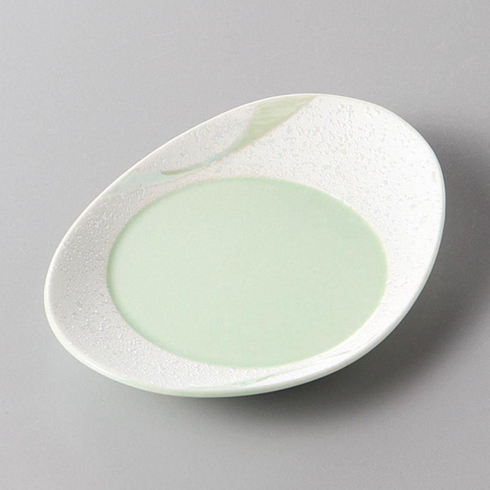 324-2-93J みやび街道vol.5 有田焼 流水ラスター楕円小皿(緑) 業務用
