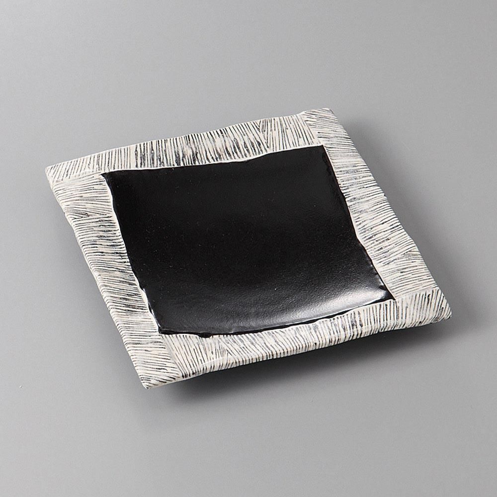 377-10-23J みやび街道vol.5 黒織部四辺筋皿 業務用
