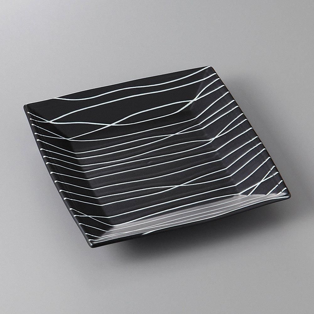 377-16-48J みやび街道vol.5 黒地小枝白線21cm角深皿 業務用