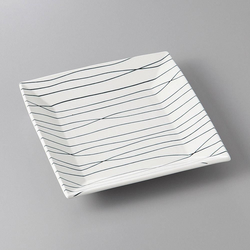 377-20-48J みやび街道vol.5 白地小枝黒線21cm角深皿 業務用