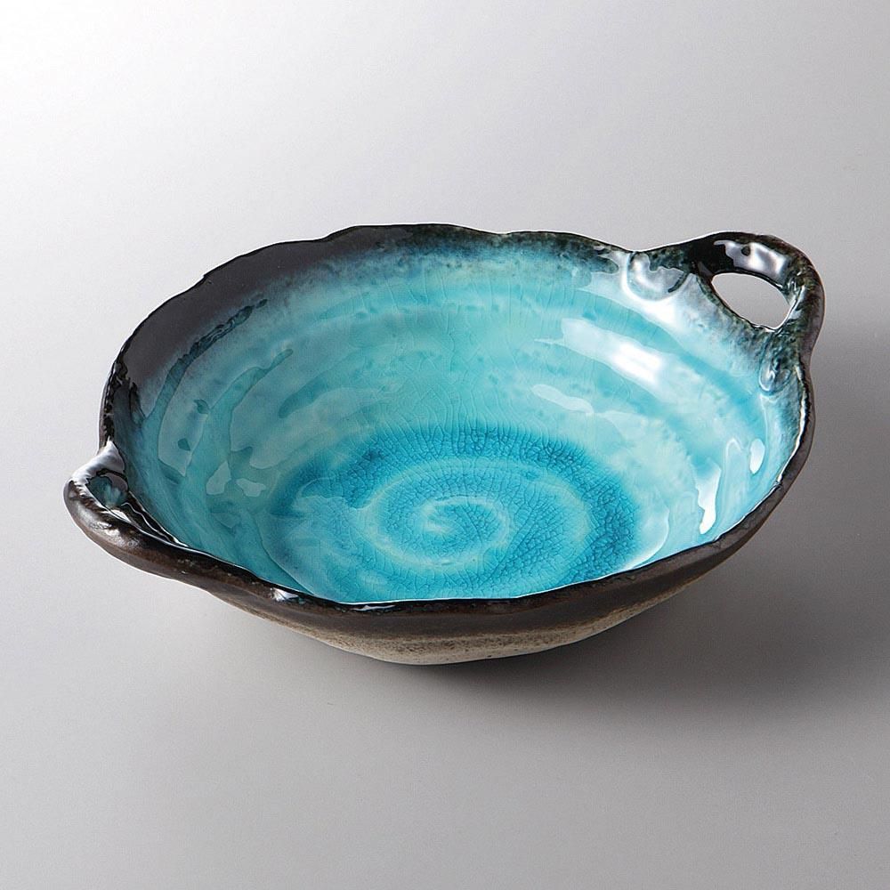 412-2-77J みやび街道vol.5 トルコブルー両手付7寸丸鉢 業務用