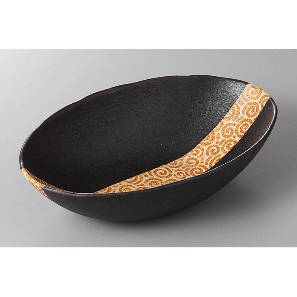 427-14-37J みやび街道vol.5 うず唐草(黒)アーモンド鉢(大) 業務用