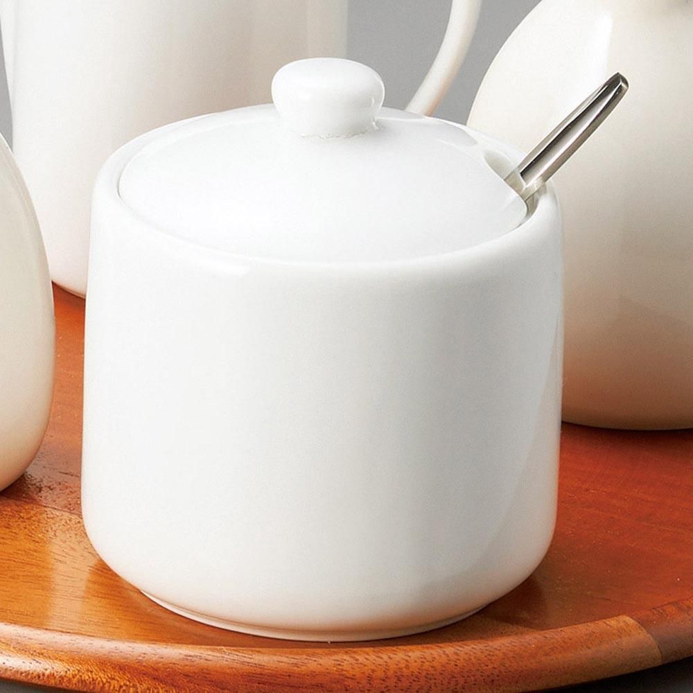 485-39-43J みやび街道vol.5 白磁シュガーポット(スプーン付) 業務用
