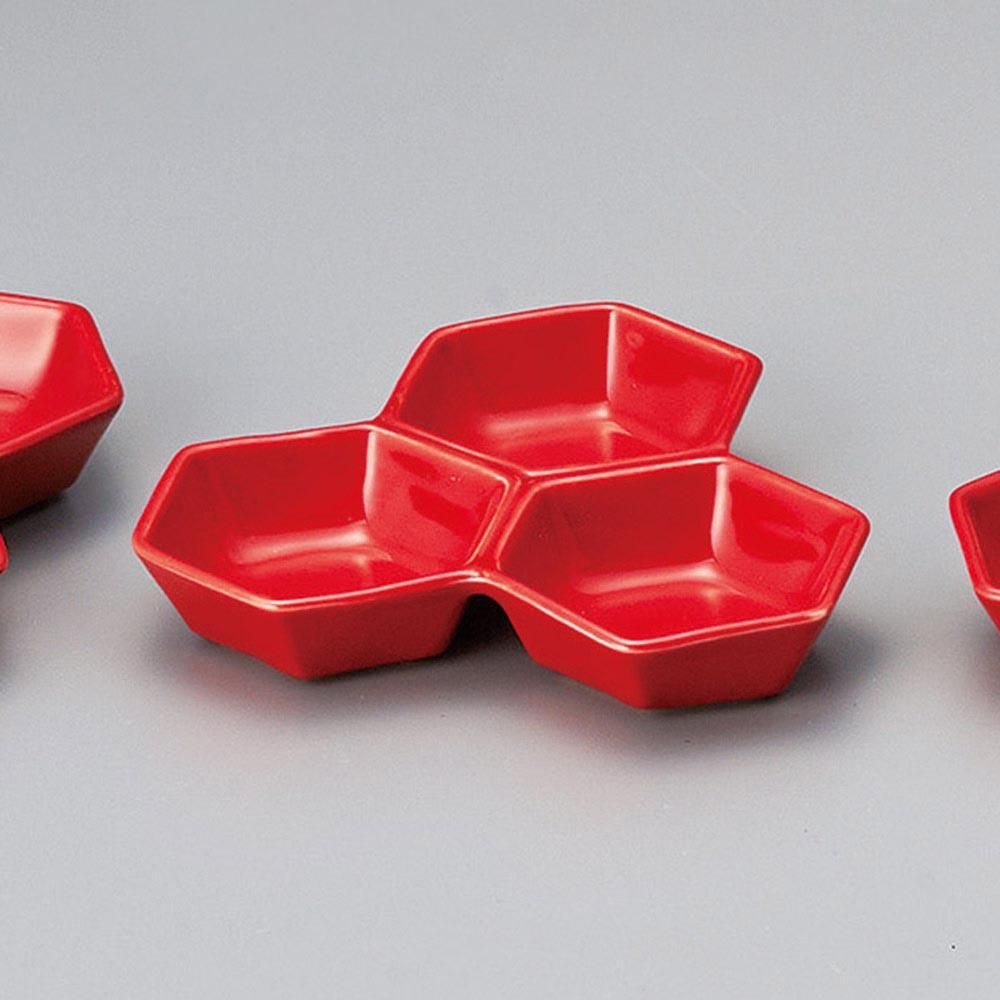 503-11-79J みやび街道vol.5 紅釉六角三品盛 業務用