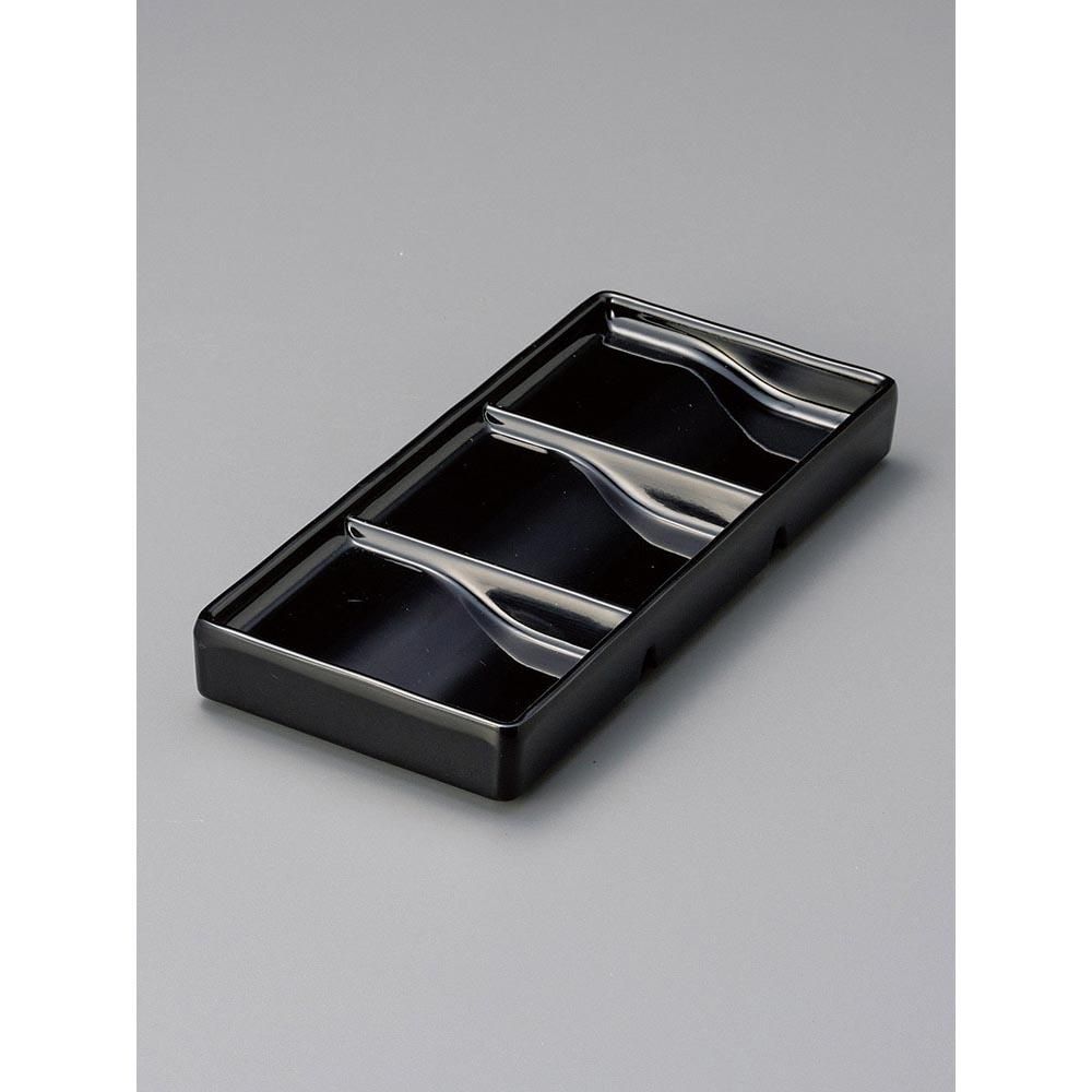504-7-48J みやび街道vol.5 樹脂黒シャイニー硯型三品皿 業務用