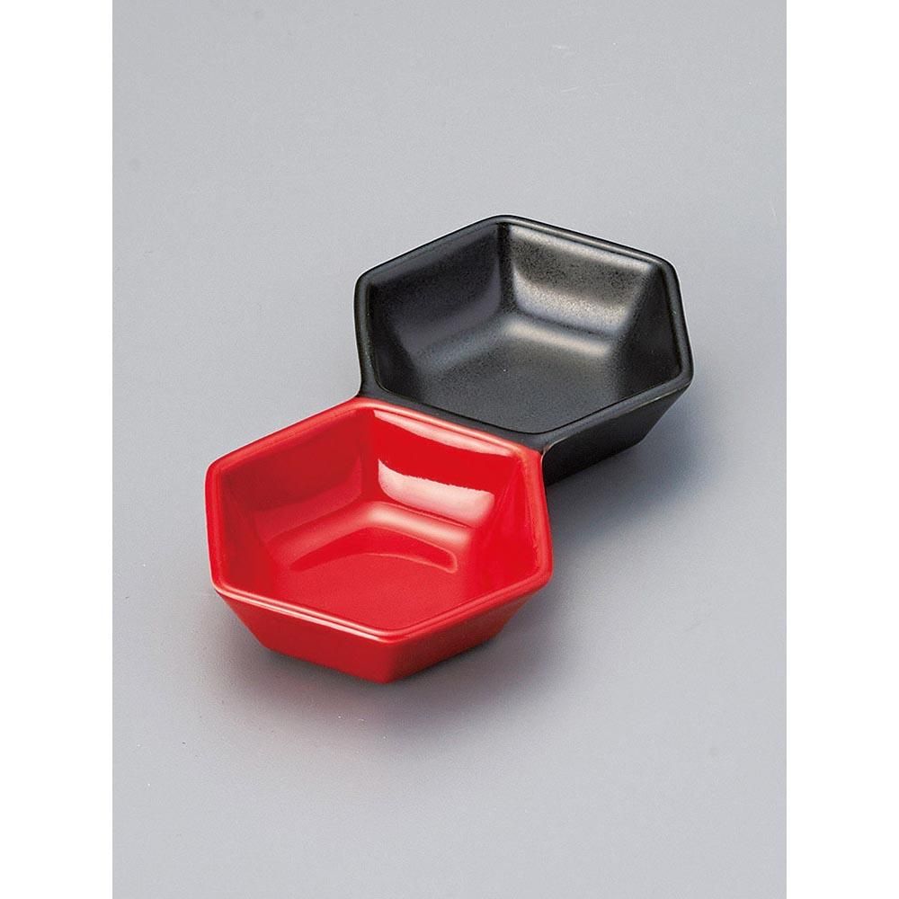 504-30-79J みやび街道vol.5 紅黒六角2品皿 業務用