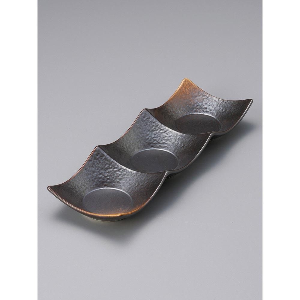 509-3-77J みやび街道vol.5 焼締(やきしめ)石目3連皿(大) 業務用