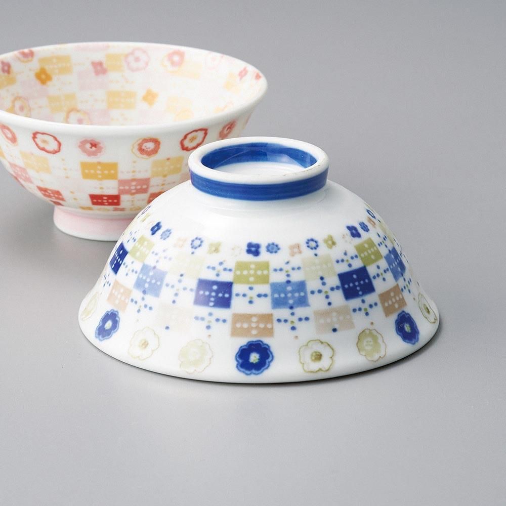 557-4-48J みやび街道vol.5 夢花市松青軽量反茶碗(大) 業務用