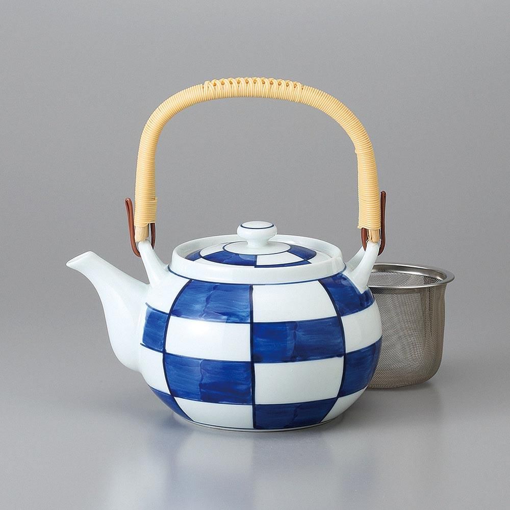 598-29-93J みやび街道vol.5 有田焼 濃市松U付6号土瓶 業務用