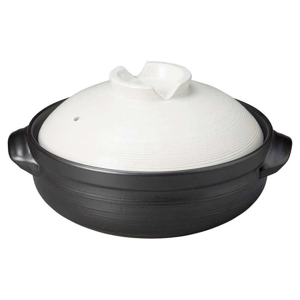 857-16-43J みやび街道vol.5 黒釉白刷毛目7号土鍋 業務用