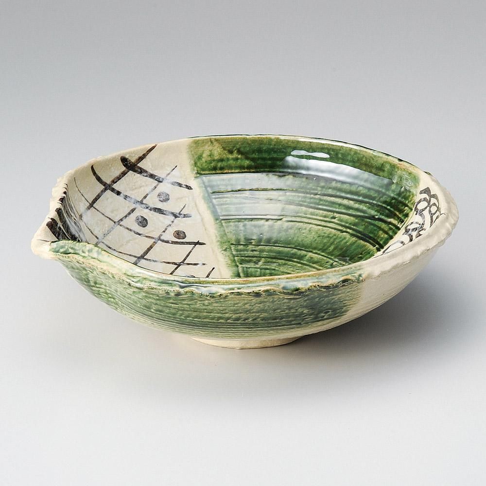 19-4-557 うつわ vol17 織部幾何紋片口10.0鉢 業務用