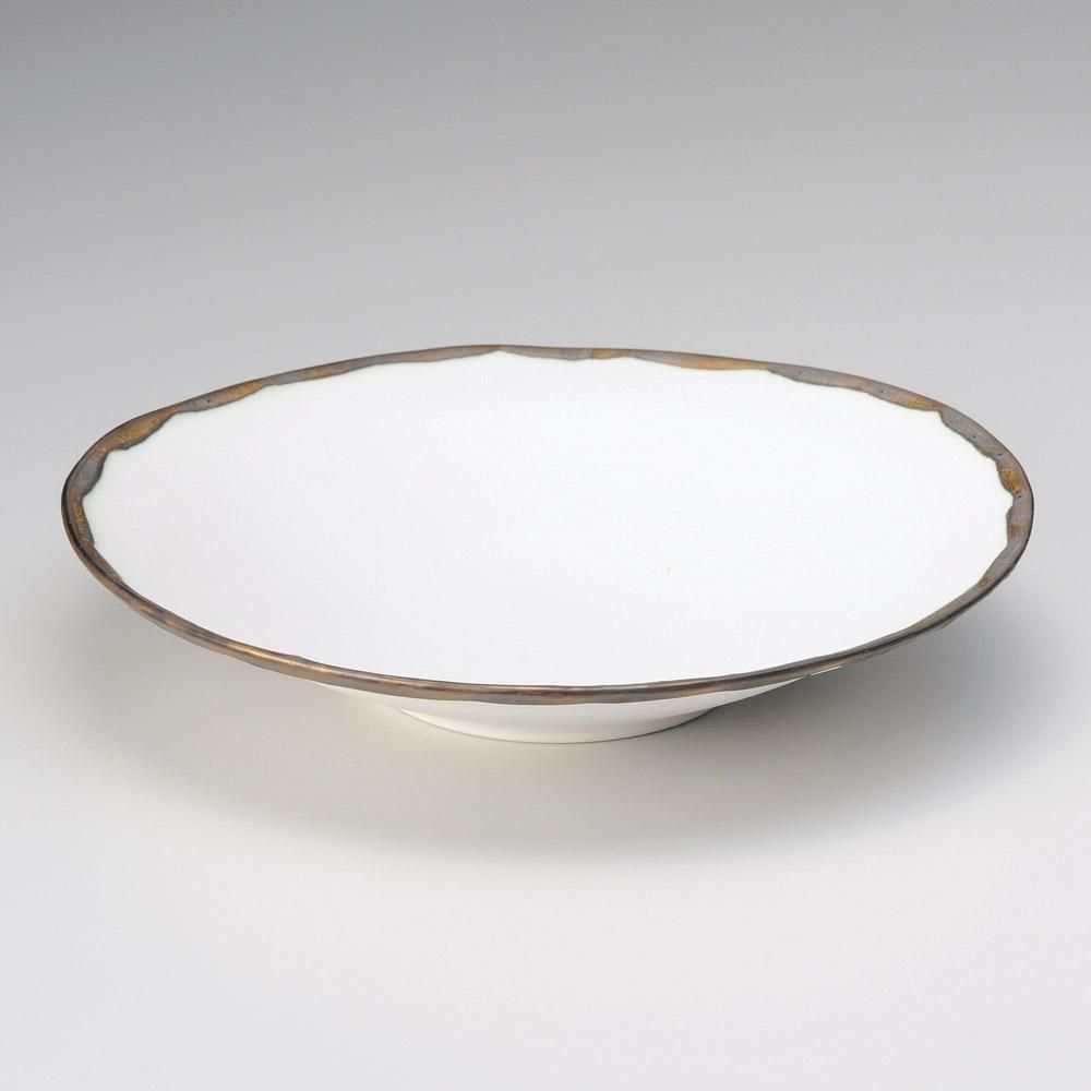 22-16-207 うつわ vol17 金釉流し白大平鉢 業務用