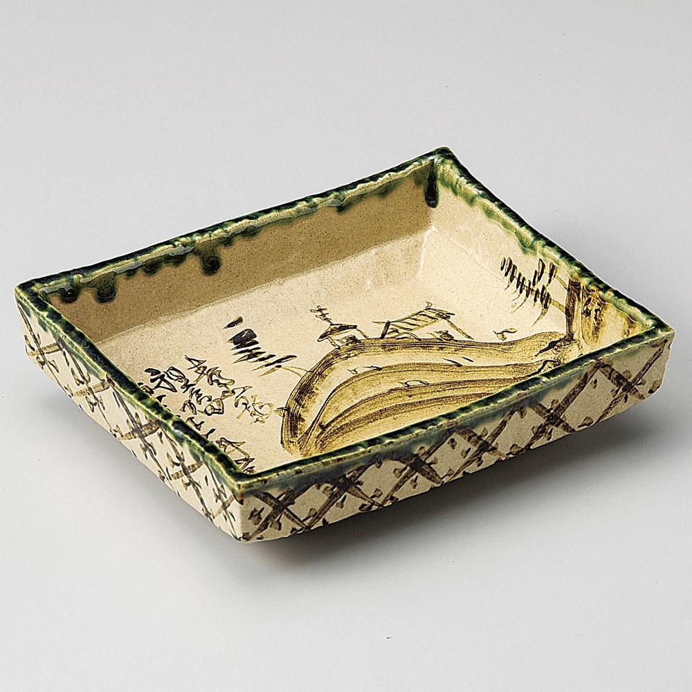 30-3-557 うつわ vol17 乾山渕オリベ山水長角盛鉢 業務用