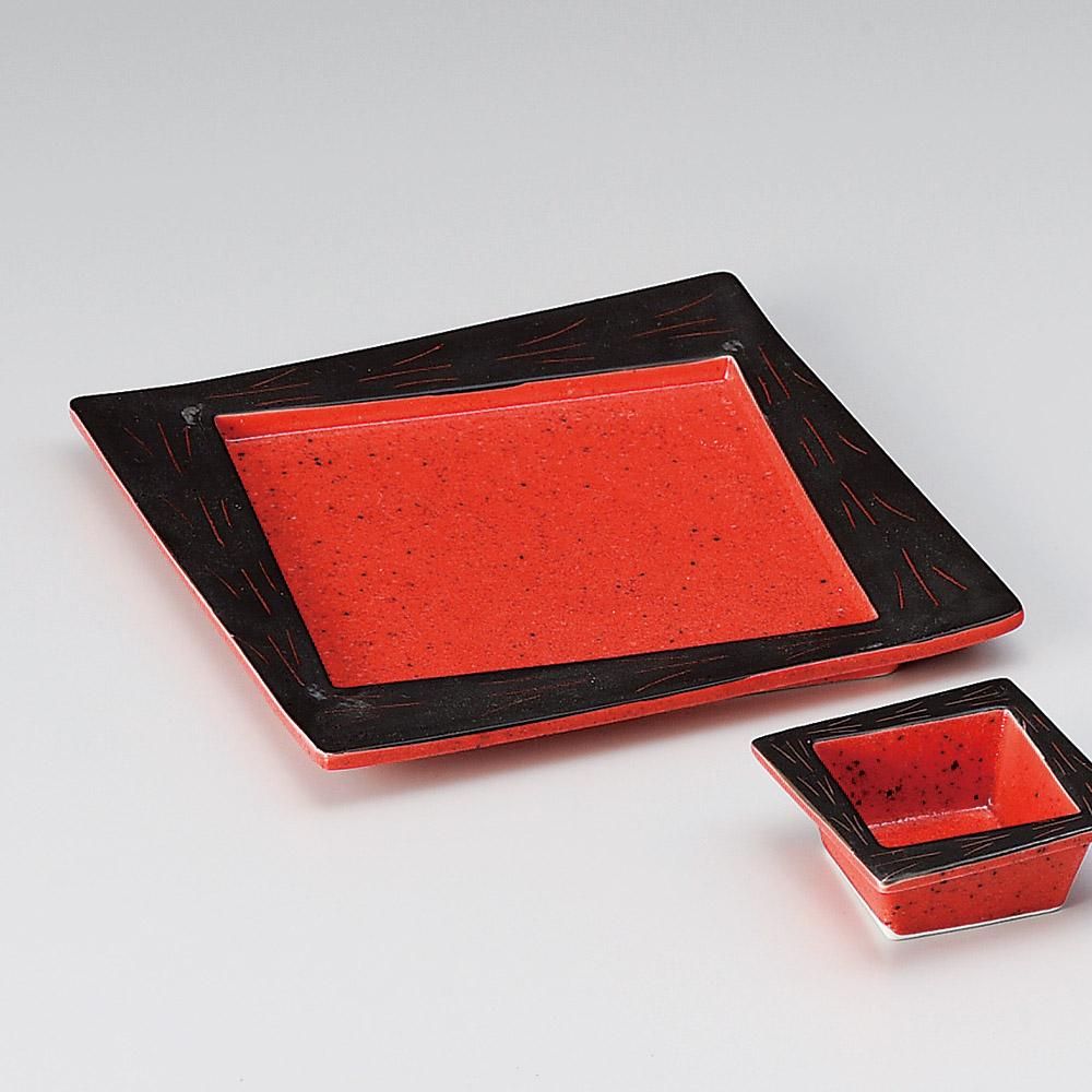 40-13-287 うつわ vol17 赤黒巻彫角大皿 業務用