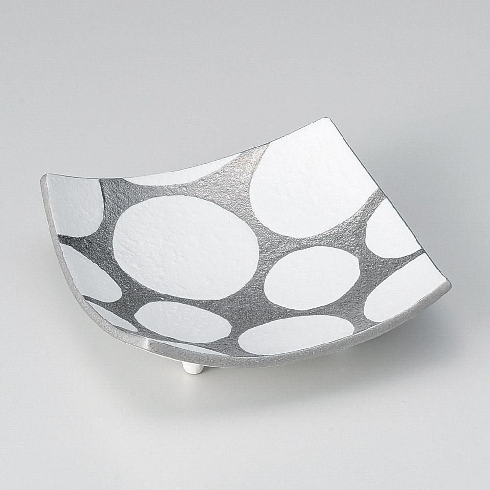 56-2-557 うつわ vol17 銀彩水玉四方上り皿 業務用