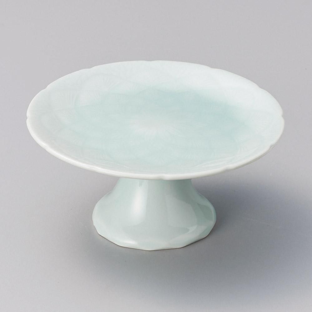 60-3-057 うつわ vol17 青白磁菊型高台皿 業務用