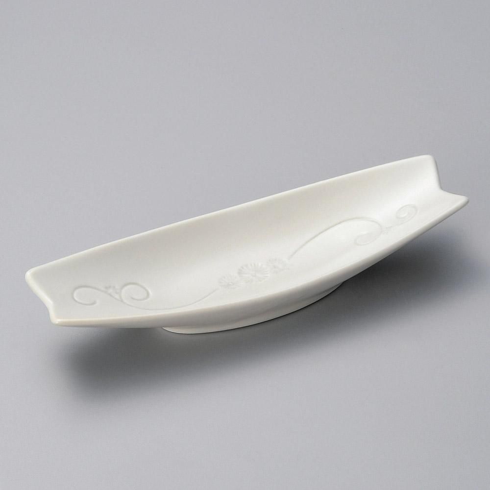 62-19-057 うつわ vol17 白灰釉彫唐草舟小鉢 業務用