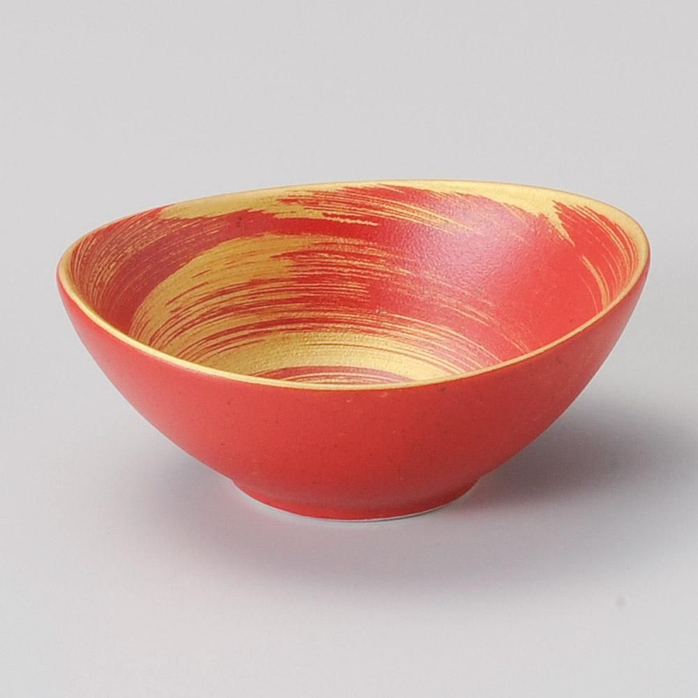 84-4-757 うつわ vol17 赤釉金彩刷毛目渦楕円小付 業務用
