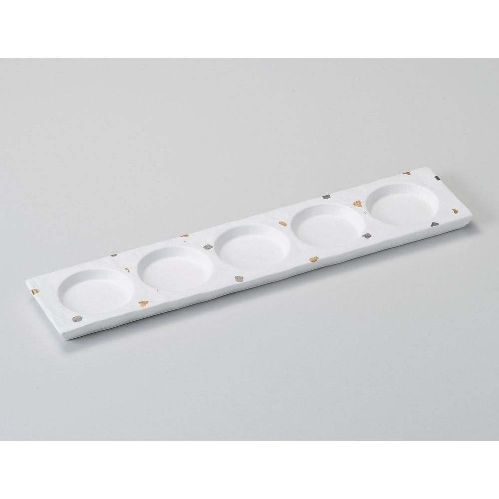 109-1-557 うつわ vol17 白マット金銀散し五品皿 業務用