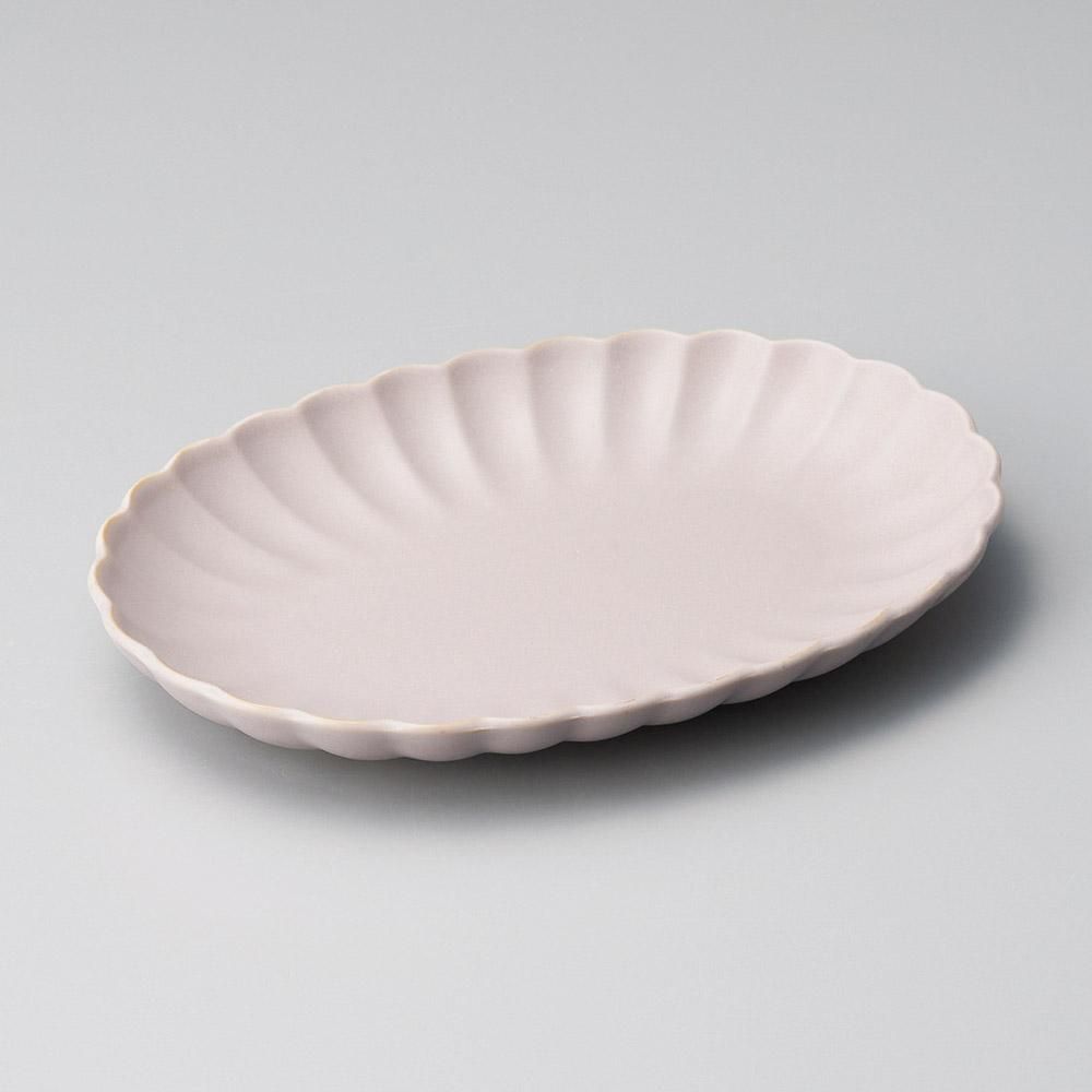 120-5-757 うつわ vol17 灰マット紫ひな菊24cm楕円皿 業務用