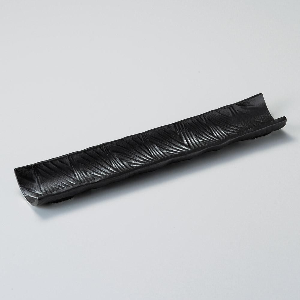 134-15-527 うつわ vol17 黒吹流紋突出長皿(大) 業務用