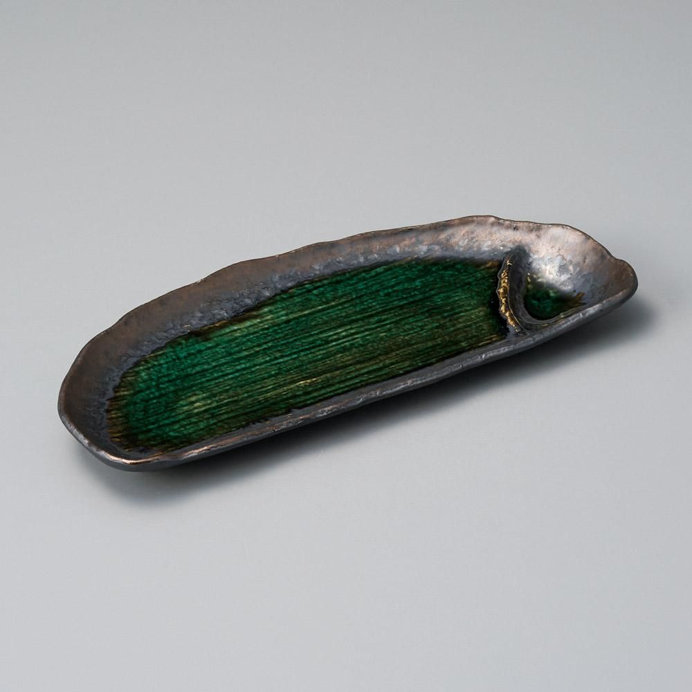 149-16-757 うつわ vol17 いぶし金彩織部半月仕切皿 業務用