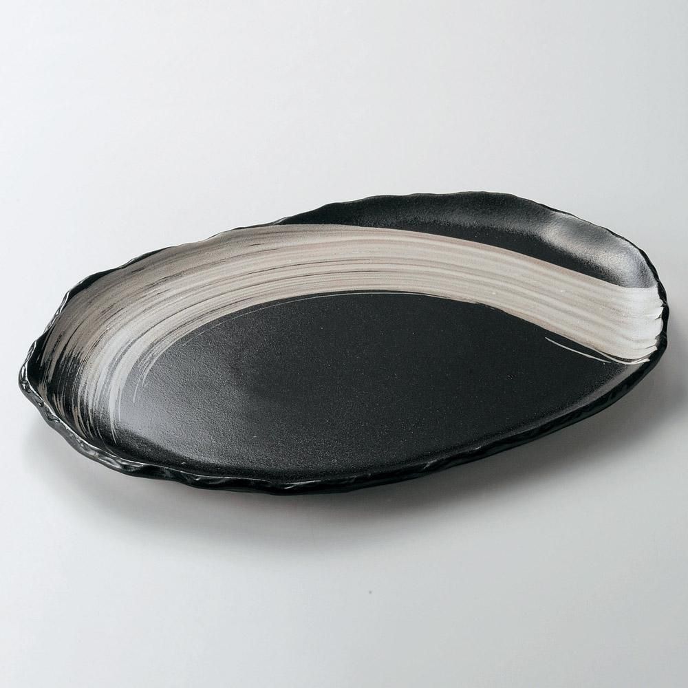159-16-817 うつわ vol17 黒釉刷毛目11.0小判皿 業務用