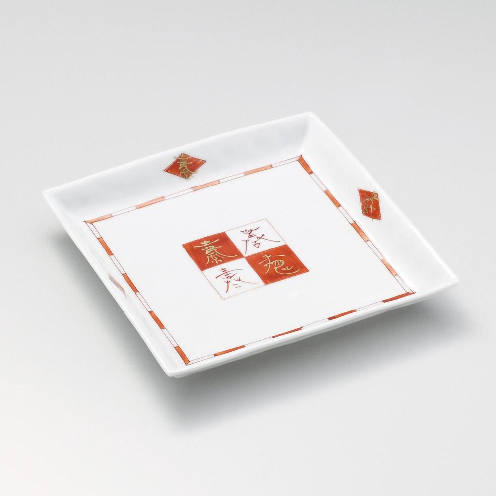 177-1-717 うつわ vol17 赤絵福来8.0角皿 業務用