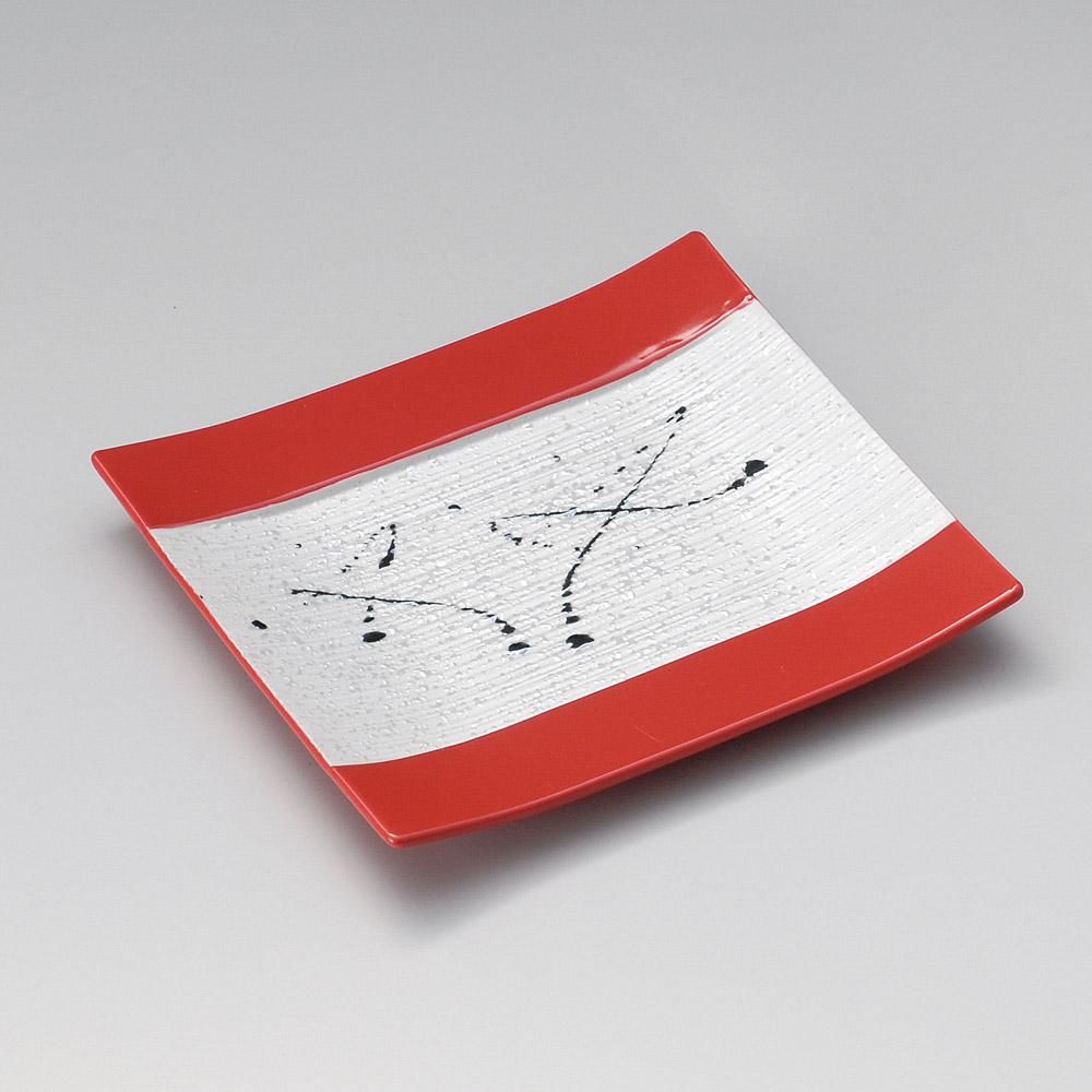182-6-527 うつわ vol17 黒飛ばしラスター赤釉筋彫正角皿 業務用