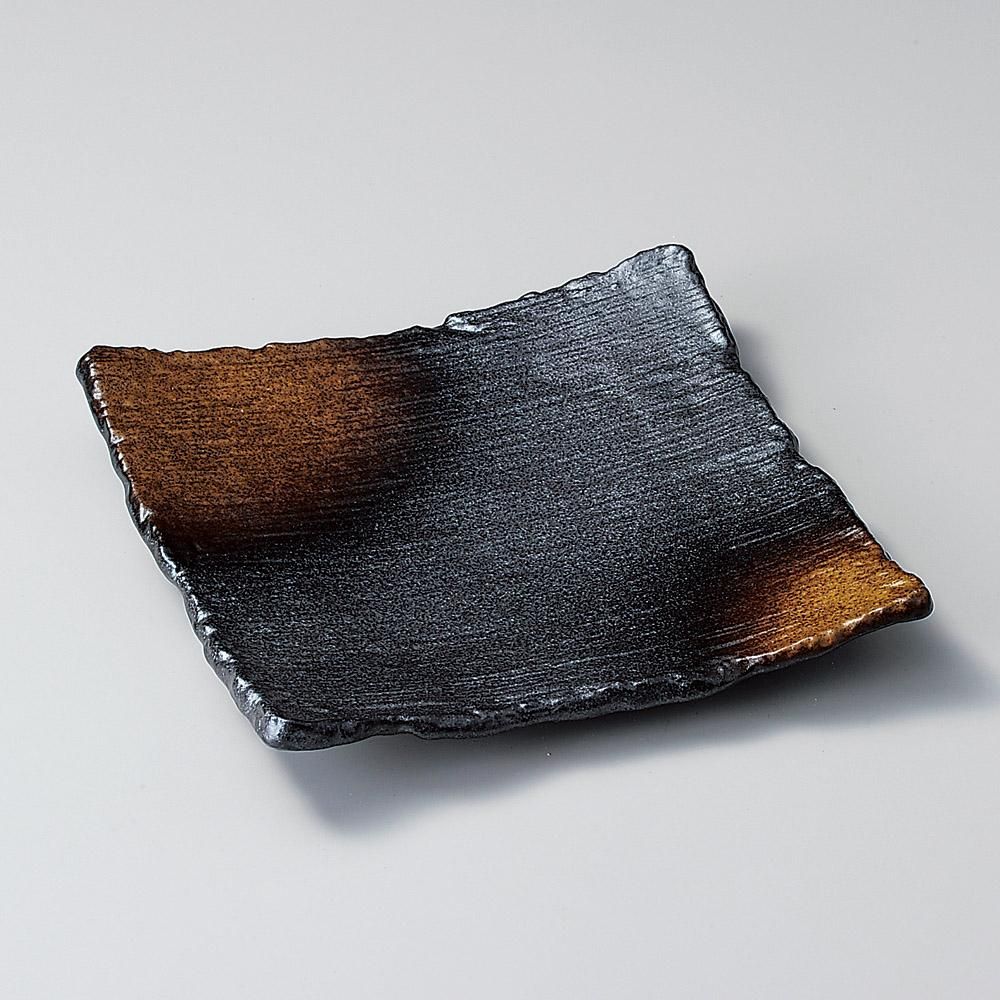 202-13-357 うつわ vol17 備前風金茶吹角口変り皿 業務用