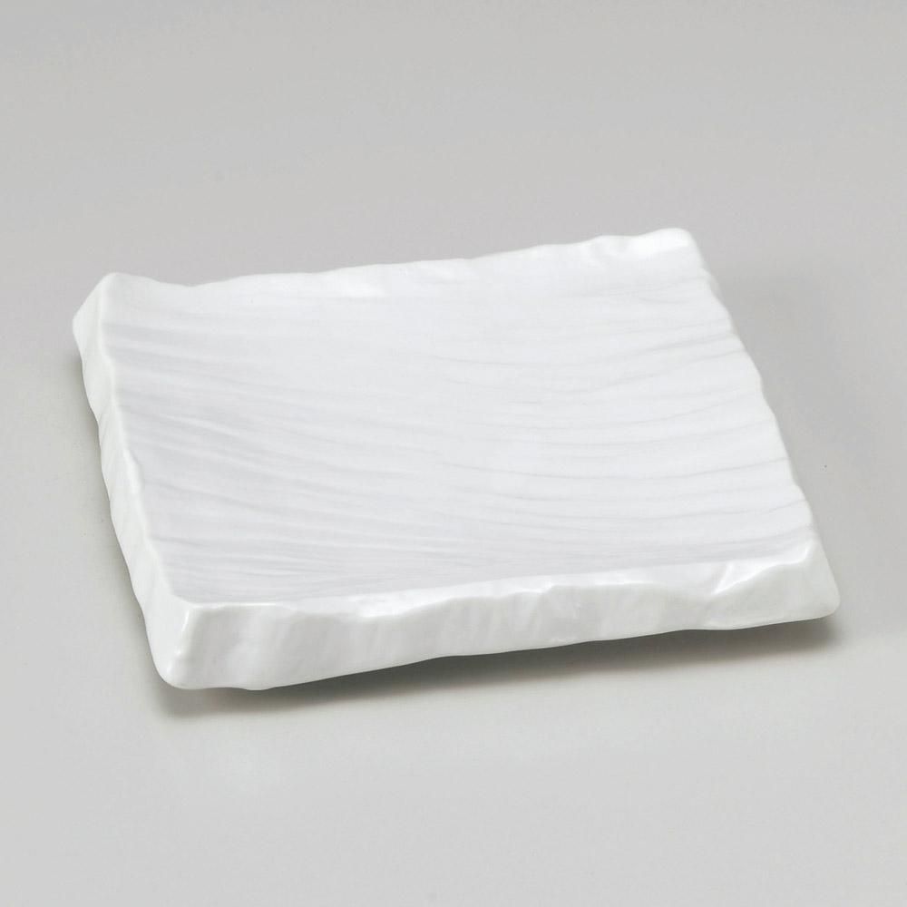 203-11-527 うつわ vol17 白マット荒彫角皿(小) 業務用