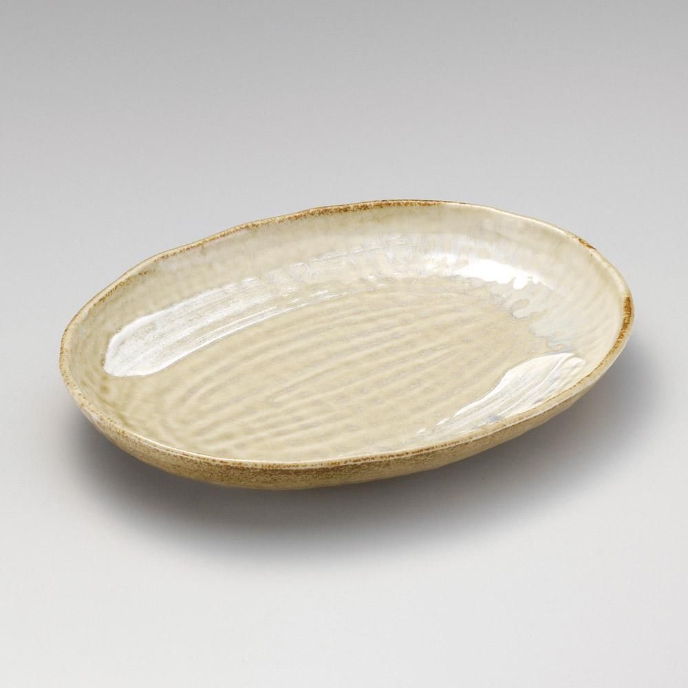 189-1-717 うつわ vol17 黄灰釉楕円大皿 業務用