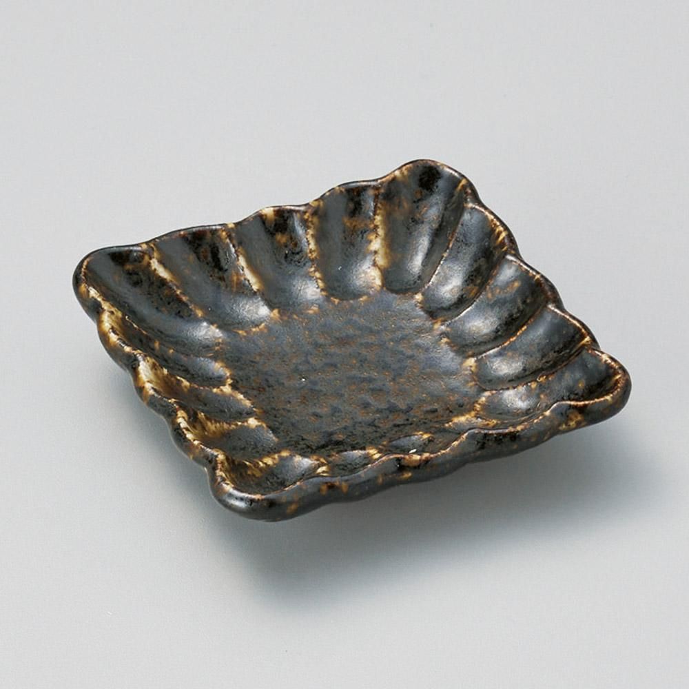 212-14-227 うつわ vol17 菊花黒正角小皿 業務用