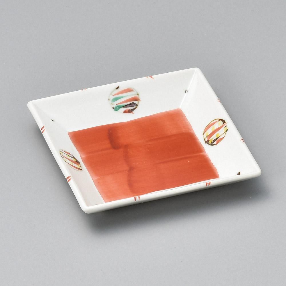 215-1-757 うつわ vol17 赤絵風船正角皿 業務用